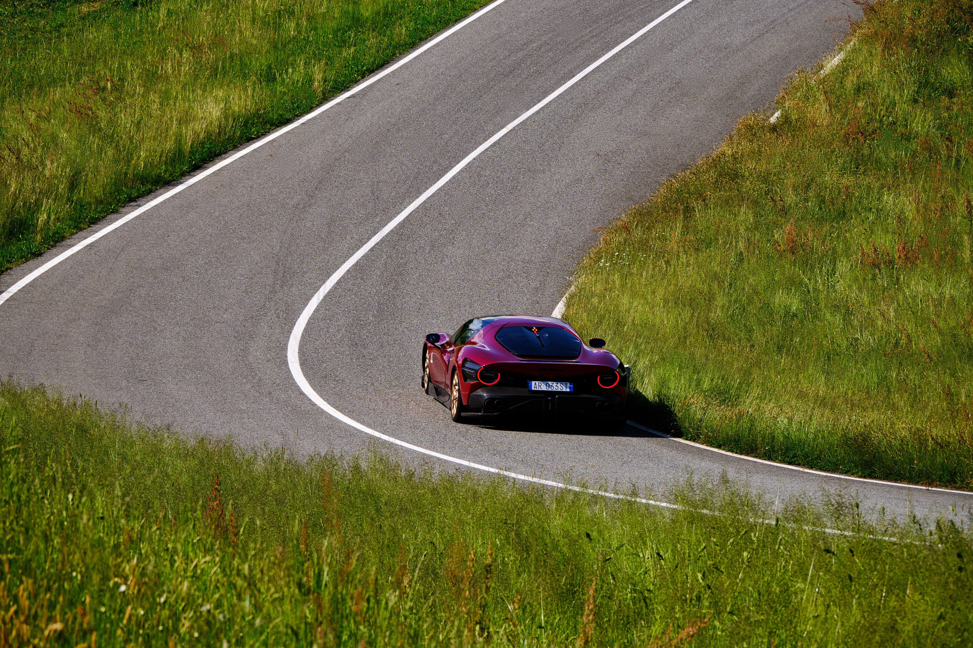 …και τότε έρχεται ο ήχος του V6, και το κούμπωμα της ταχύτητας που ταρακουνάει όλο το αυτοκίνητο, με το τράβηγμα του μεγάλου αλουμινένιου paddle που έχει υπέροχη μηχανική λειτουργία και το νιώθεις σαν ένα αγωνιστικό σειριακό. Τα πετραδάκια ξεκολλούν από το μαλακό σαν τσίχλα πέλμα και χτυπούν στην κοιλιά του monocoque, καμιά φορά χορεύουν πάνω στα φτερά ή περνούν στην καμπίνα από το μικρό, σαν γραμματοκιβωτίου, άνοιγμα του παραθύρου. Και εκεί που ήσουν σχεδόν βέβαιος ότι η αθωότητα έχει πεθάνει, εμφανίζεται ξαφνικά μια μηχανή σαν αυτή και νιώθεις ακόμη ευάλωτος στην αναγκαιότητα της ομορφιάς